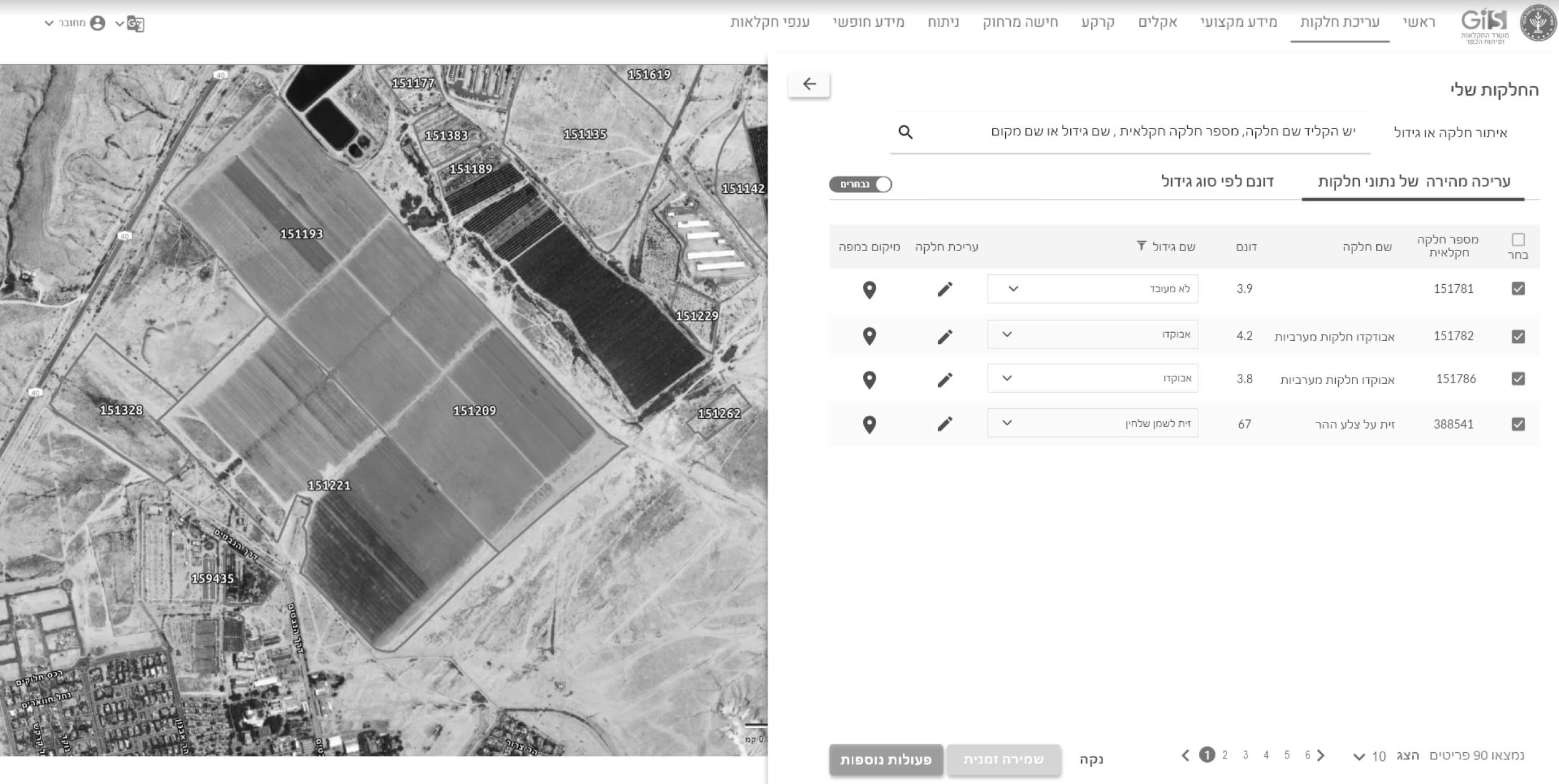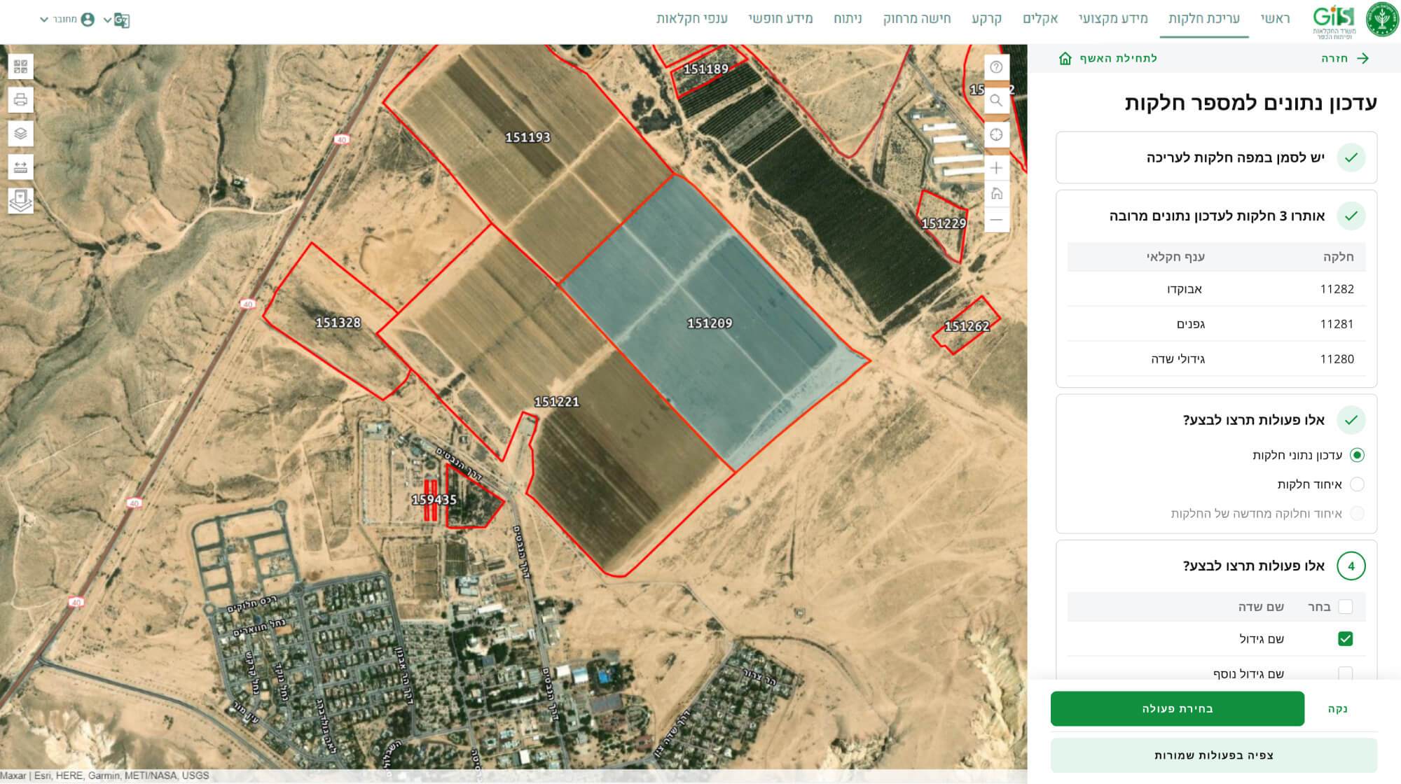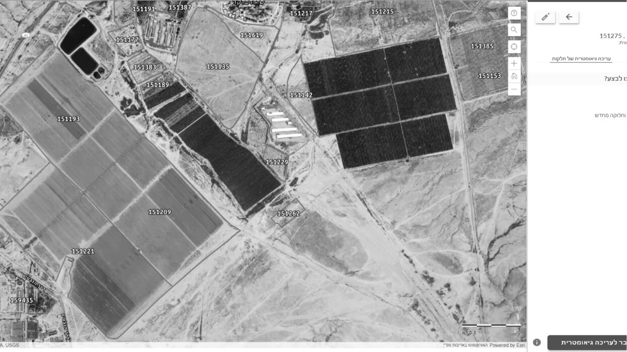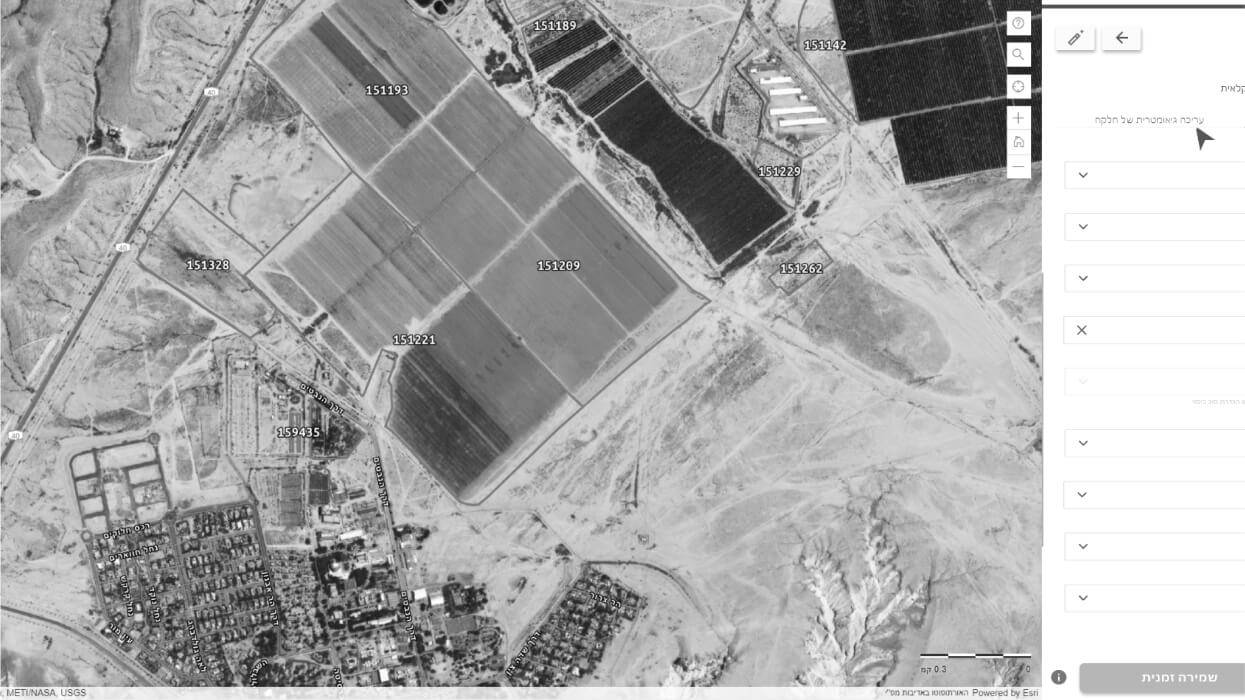 מאפשרת לחקלאי לערוך אונליין את המידע על החלקות שלו. אשף עריכת חלקות המאפשר לחקלאי לעדכן נתונים של חלקה, להוסיף, למחוק, לאחד, לפצל, לשנות צורות חלקה, לעדכן נתונים על מספר חלקות בו זמנית ועוד